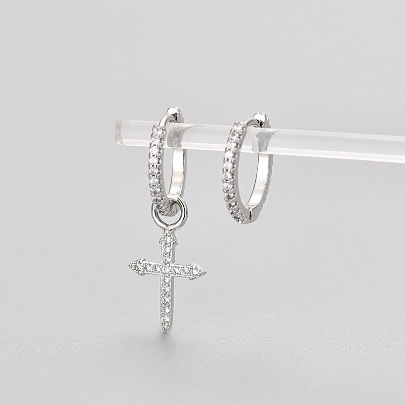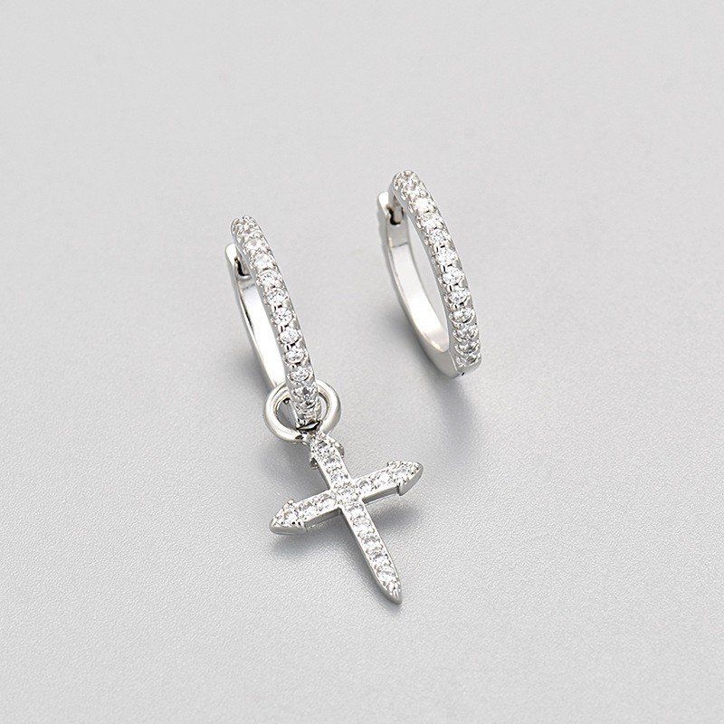 Each stud earring is made with high-quality materials to ensure durability and lasting beauty. The dazzling diamonds and meticulously cut zircon stones are expertly set against a robust base, delivering unmatched brilliance and sparkle. The asymmetrical cross design symbolizes individuality and adds a contemporary edge, making these earrings both stylish and meaningful.