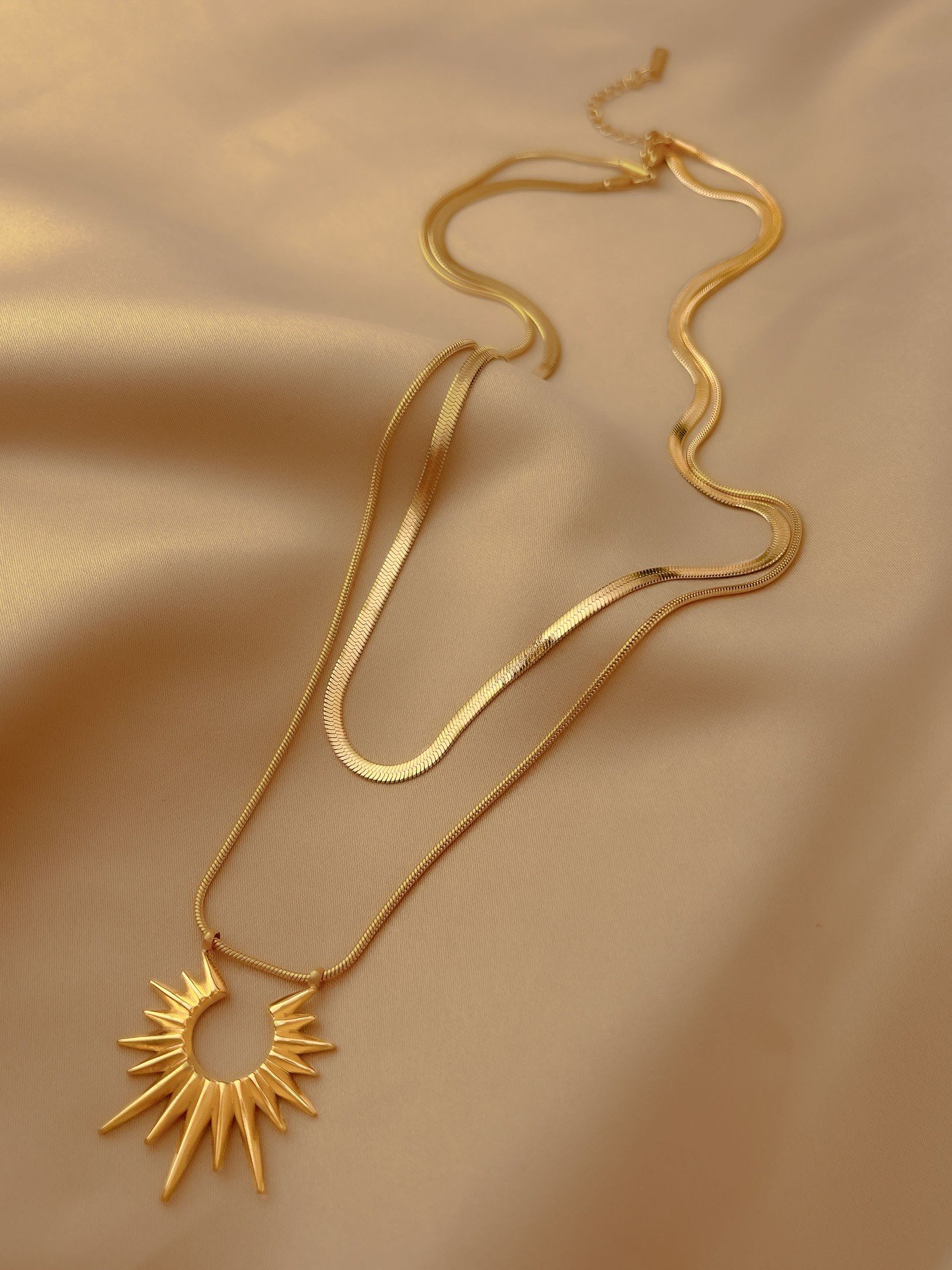 The elegant double-chain design isn’t just about aesthetics—it also speaks to its high-quality craftsmanship. Made from hypoallergenic materials, the necklace ensures comfort and longevity. The radiant sun pendant at the centerpiece symbolizes strength, positivity, and brilliance. Its intricate details showcase fine artistry, ensuring it catches the light from every angle, giving off a subtle glow that enhances your presence in any setting.