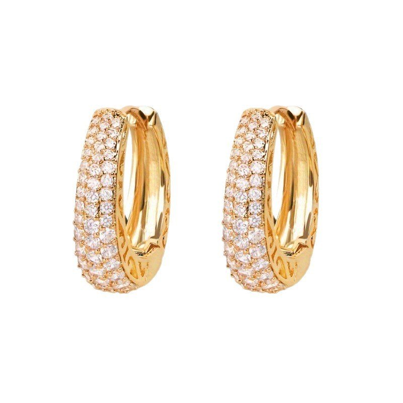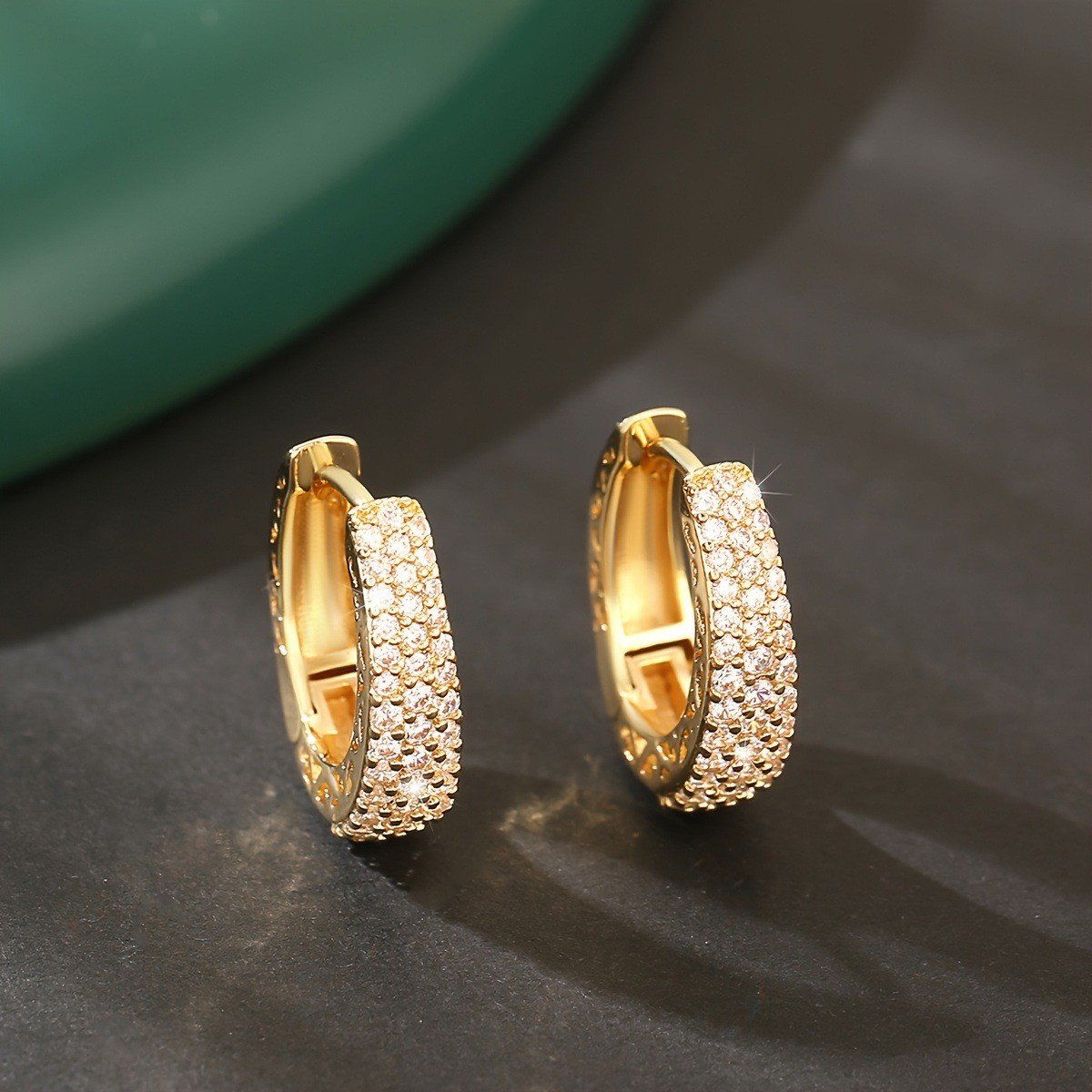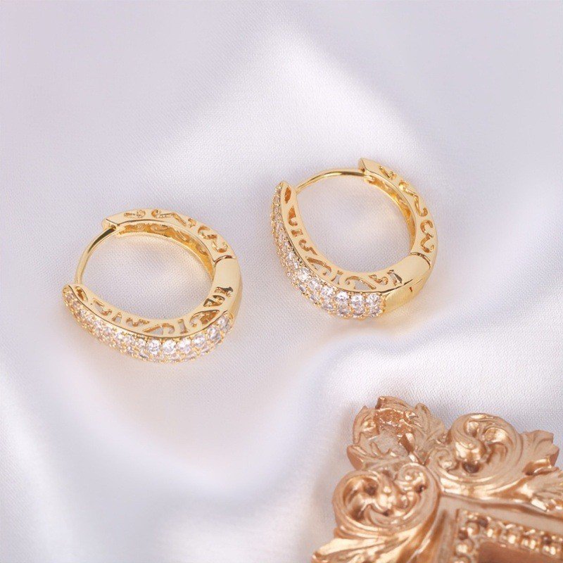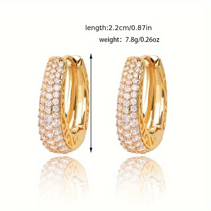Crafted with durable golden plating and premium-grade zircon, these stud earrings deliver unmatched quality and sparkle. The golden plating ensures a luxurious sheen that resists tarnishing over time, while the carefully-selected zircon stones offer brilliance and clarity akin to that of diamonds. Perfect for those who seek an affordable yet luxurious statement piece for their jewelry collection, these earrings boast longevity and timeless charm.