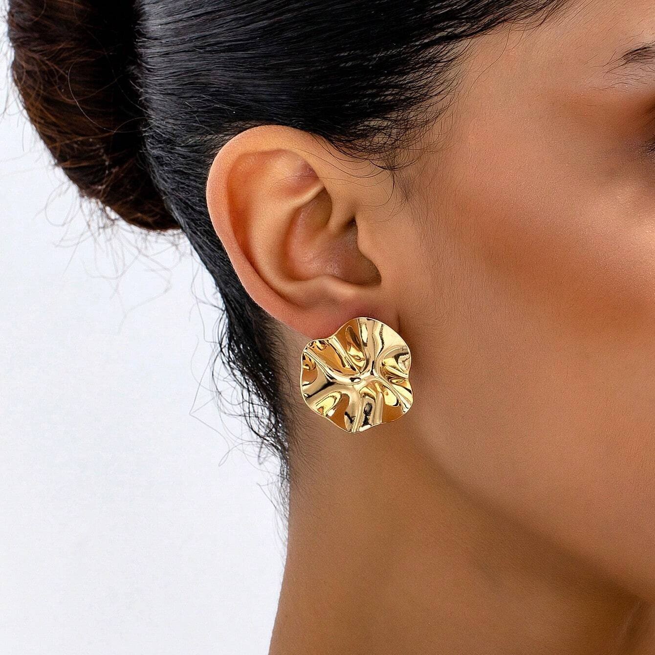 Each pair of earrings is crafted with precision and care, ensuring long-lasting quality that you can rely on. Featuring a durable gold-plating, the irregular wrinkled texture adds a tactile element that stands out while remaining lightweight and comfortable for all-day wear. Hypoallergenic materials further make these earrings suitable for sensitive skin, combining fashion with functionality.