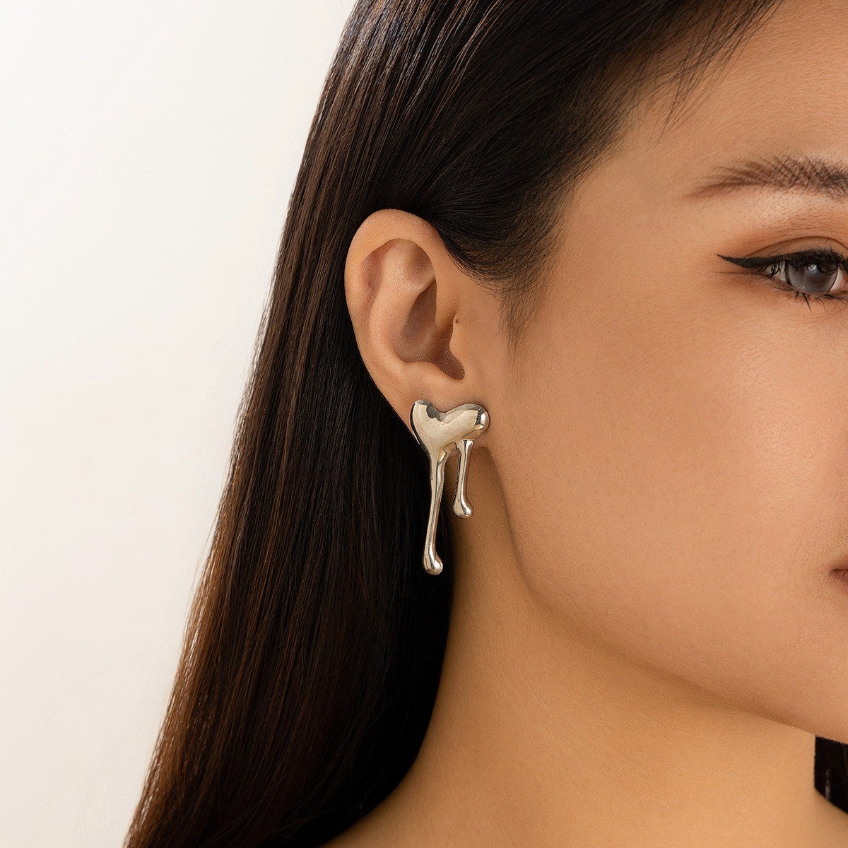 The Liquid Lava Metal Heart Drop Earrings boast a unique and mesmerizing design that sets them apart. Featuring intricately molded heart shapes with a liquid metal finish, their shimmering surface catches the light beautifully, giving off an ethereal glow. The lightweight construction ensures comfort for extended wear, while the premium-grade materials guarantee durability and resist tarnishing over time. These earrings are crafted with precision, ensuring every detail contributes to their dazzling appearance and timeless appeal.