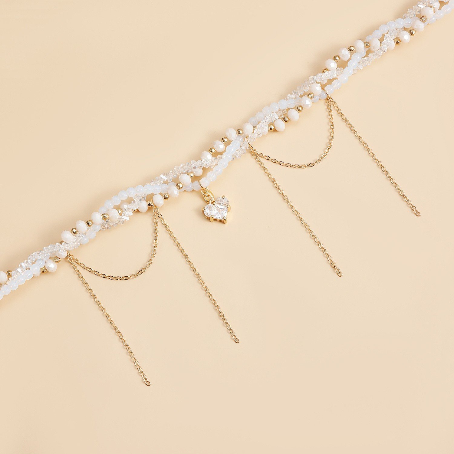 Crafted with utmost care, this necklace features multiple layers of intricately wrapped glass crystals that glisten and catch the light with every movement. The heart-shaped pendant adds a touch of femininity, while the delicate tassel detail offers a playful yet sophisticated vibe. Each component of this choker has been designed to not only look beautiful but also ensure comfort and durability. The adjustable clasp guarantees a perfect fit, making it suitable for all neck sizes.
