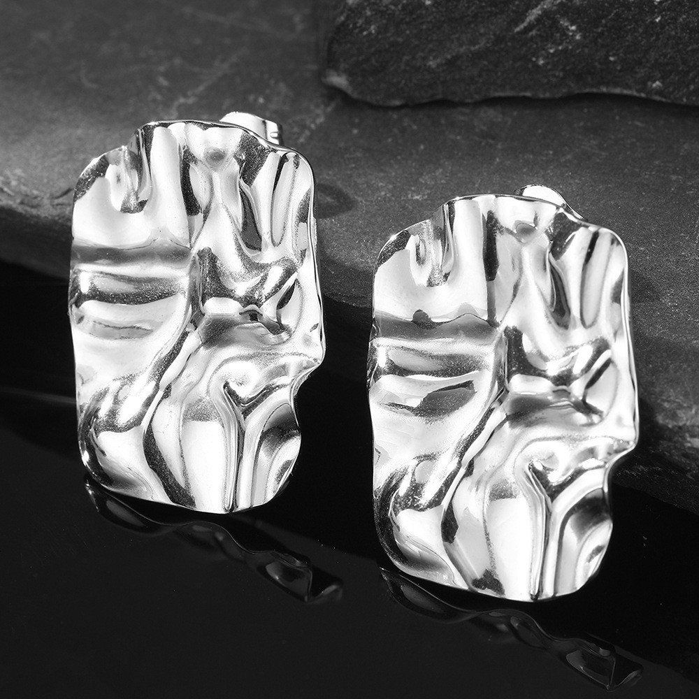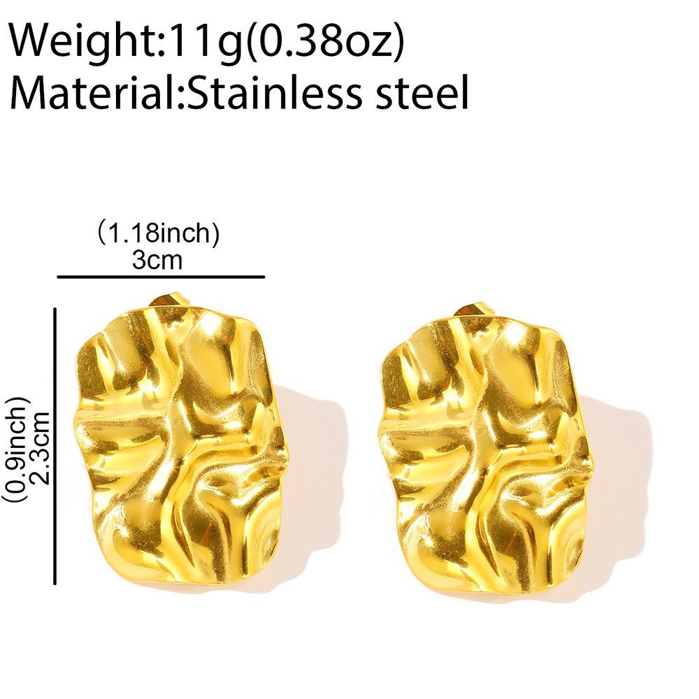 Stainless Steel Geometric Square Wave Texture Earrings 18K Gold-plated Handmade High Polished Titanium Steel Stud Earrings